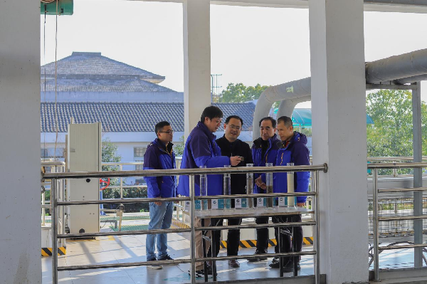 汪偉一行在排水公司觀看了《水寶寶一日游》系列宣傳片,緊接著來到污水處理現(xiàn)場(chǎng)詳細(xì)了解污水運(yùn)行和水質(zhì)達(dá)標(biāo)排放等情況,汪偉對(duì)廠區(qū)運(yùn)營管理和環(huán)境給予了肯定。